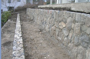Den översta bilden visar 3 murar terraseringar som är 18 meter långa och 1,5 meter breda