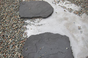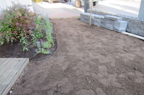 Vi bygger även upp en 70cm hög mur av mursten från Bender, lägger ut grå Steppingstone samt Dansk sjösten.